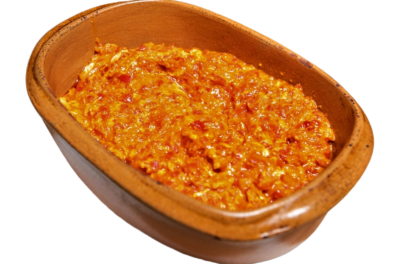 3 jaja, nadev, dve kriške starog sira, ajvar ili paradajz kao garniš.