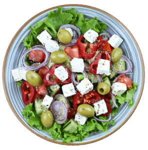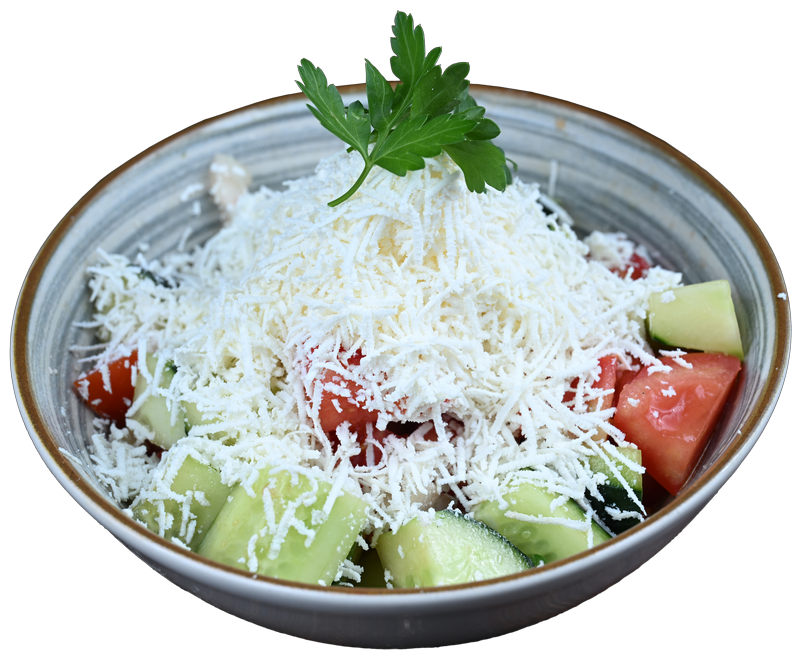 Paradajz, krastavac, crni luk, stari sir, ulje.