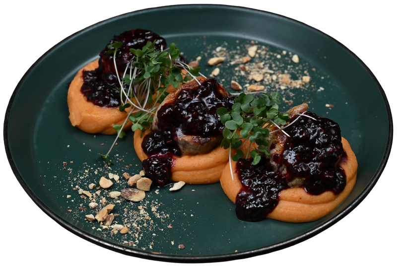 Grilovani svinjski file u sosu od mešavine šumskog voća, meda, balzamika, crnog vina i začina.