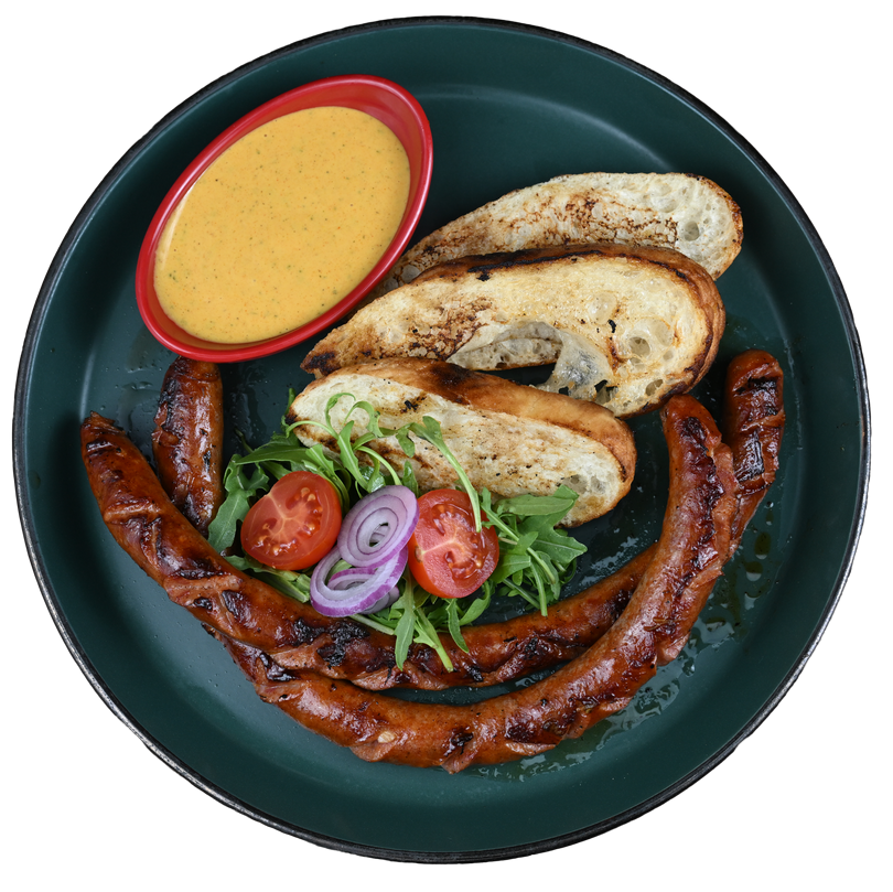 Sa rukolom, čeri paradajzom, crvenim luko, burger soso i kriškama belolučanog somuna u prilogu.