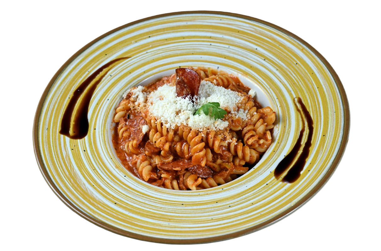 Fusili, cepkano pile, kulen, ljuta papričica, pelat, začini.